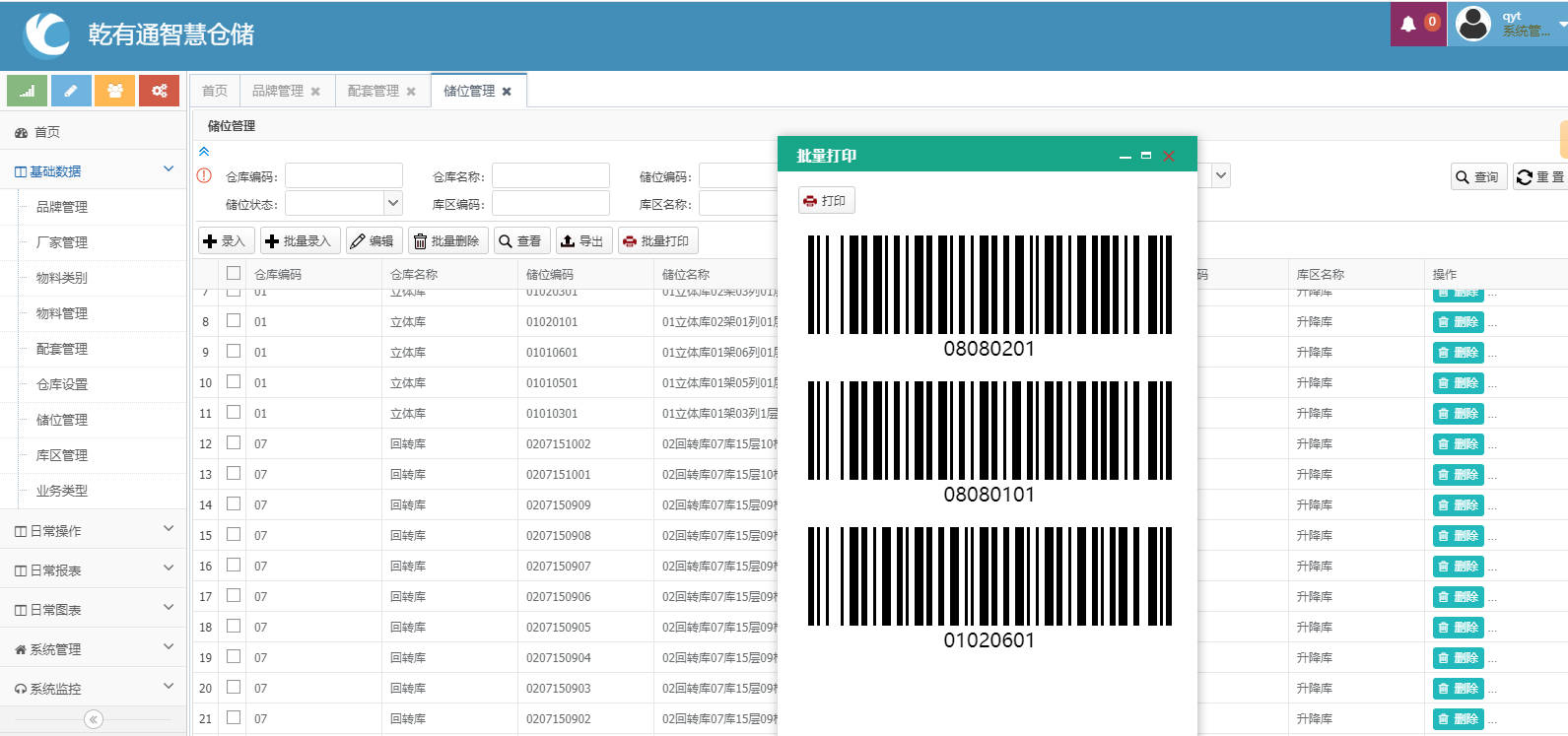 乾有通智能仓储管理系统通过入库管理、出库管理、配套管理、储位管理、仓库管理及库区管理等功能,实现物料的批次管控、精准定位、全生命周期可控可查。系统结合条码、RFID、电子标签等辅助工具,可有效控制并跟踪仓库业务的物流全过程,实现物料的快速存储及快速分拣,提高仓储物流配送效率。